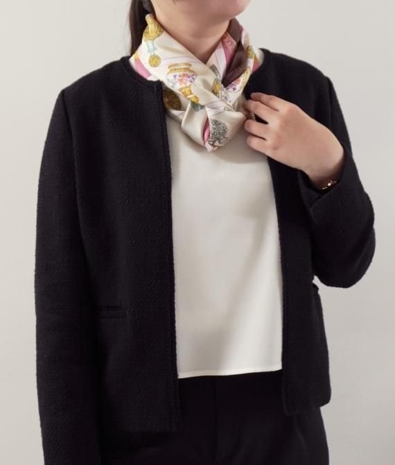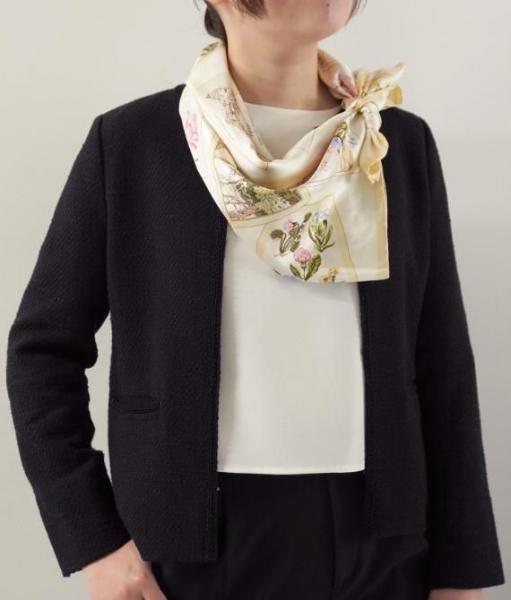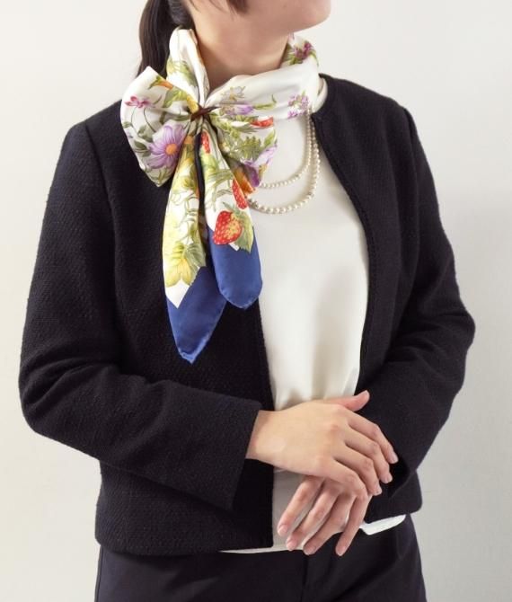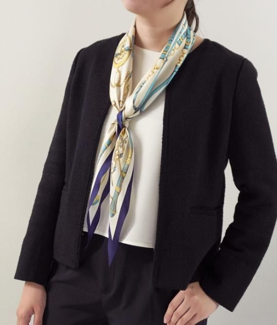 スカーフの絵柄を主張させすぎずにさりげないアクセントとしてお使い頂けます。
