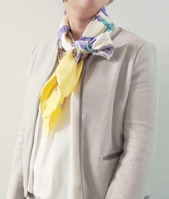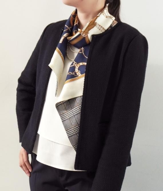 今回はジャケットと合わせても素敵なスタイリングとオススメスカーフをご紹介します。