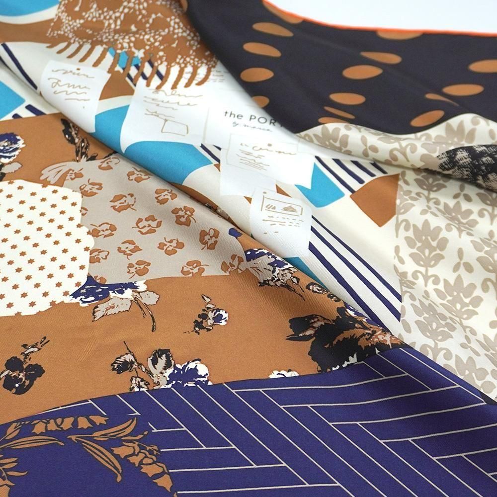 the PORT by marcaブランドのスカーフは毎日の生活に彩りを添えるプリントでありたいという願いを込めて制作しております。