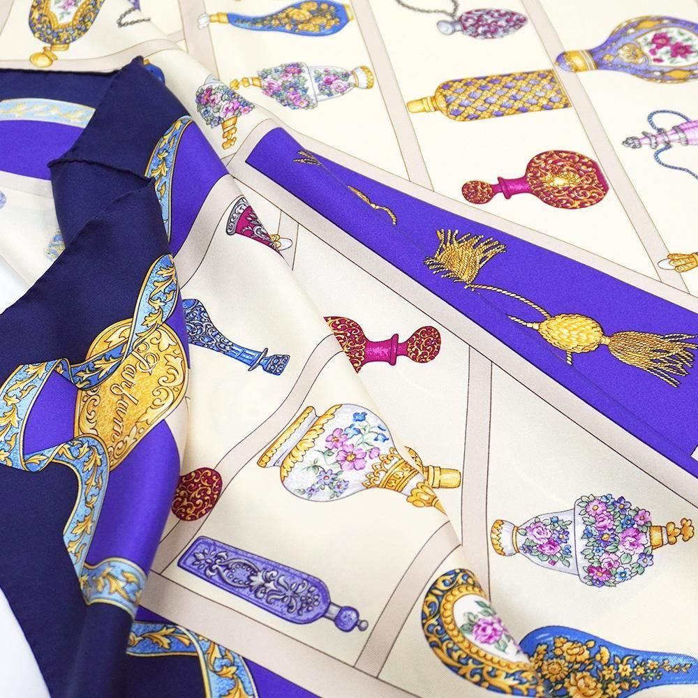香水瓶は1つ1つの瓶が丁寧に描きこまれた素敵なスカーフですよね。
