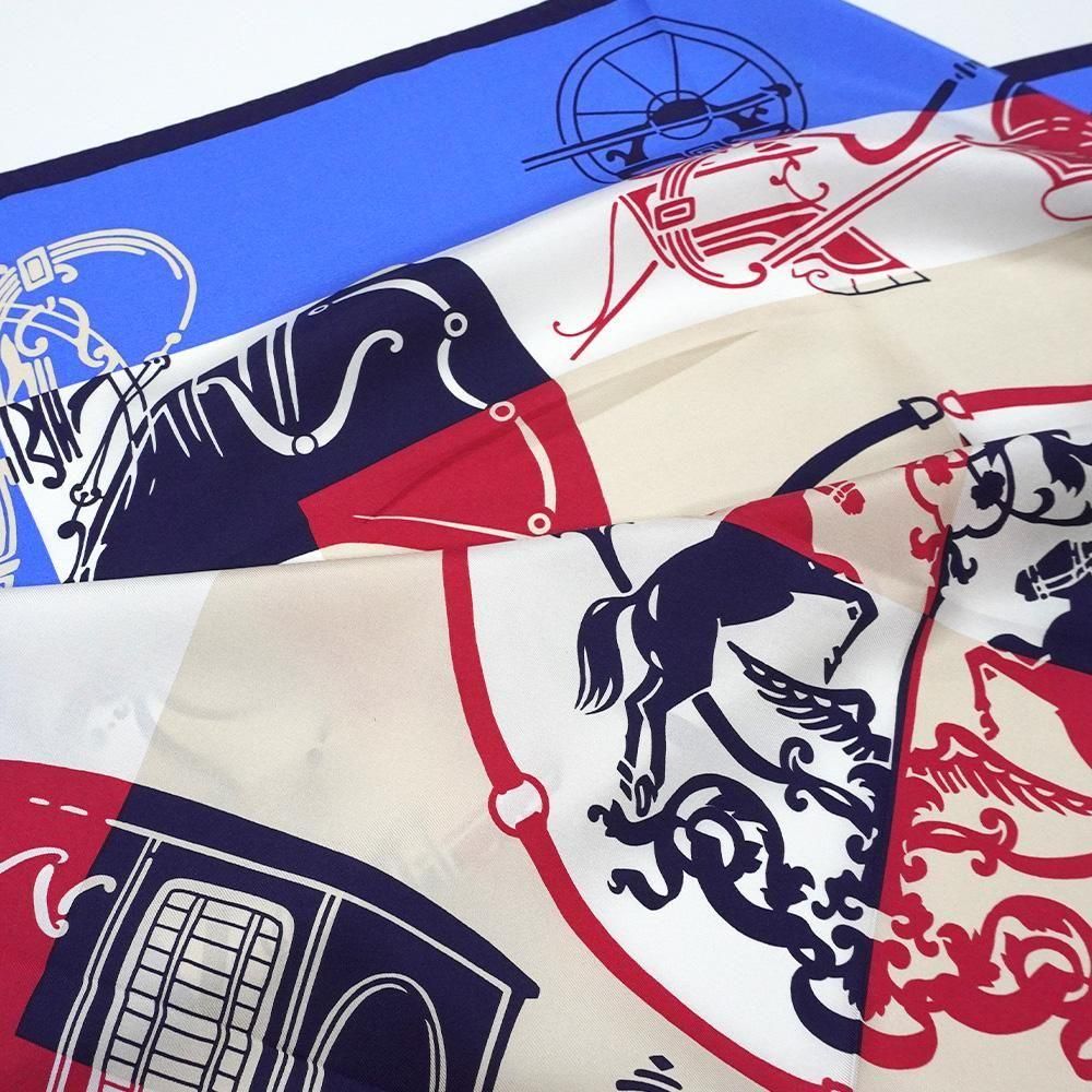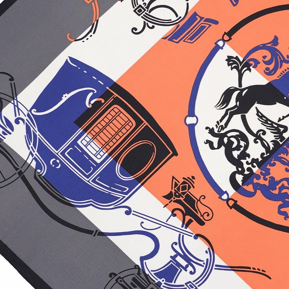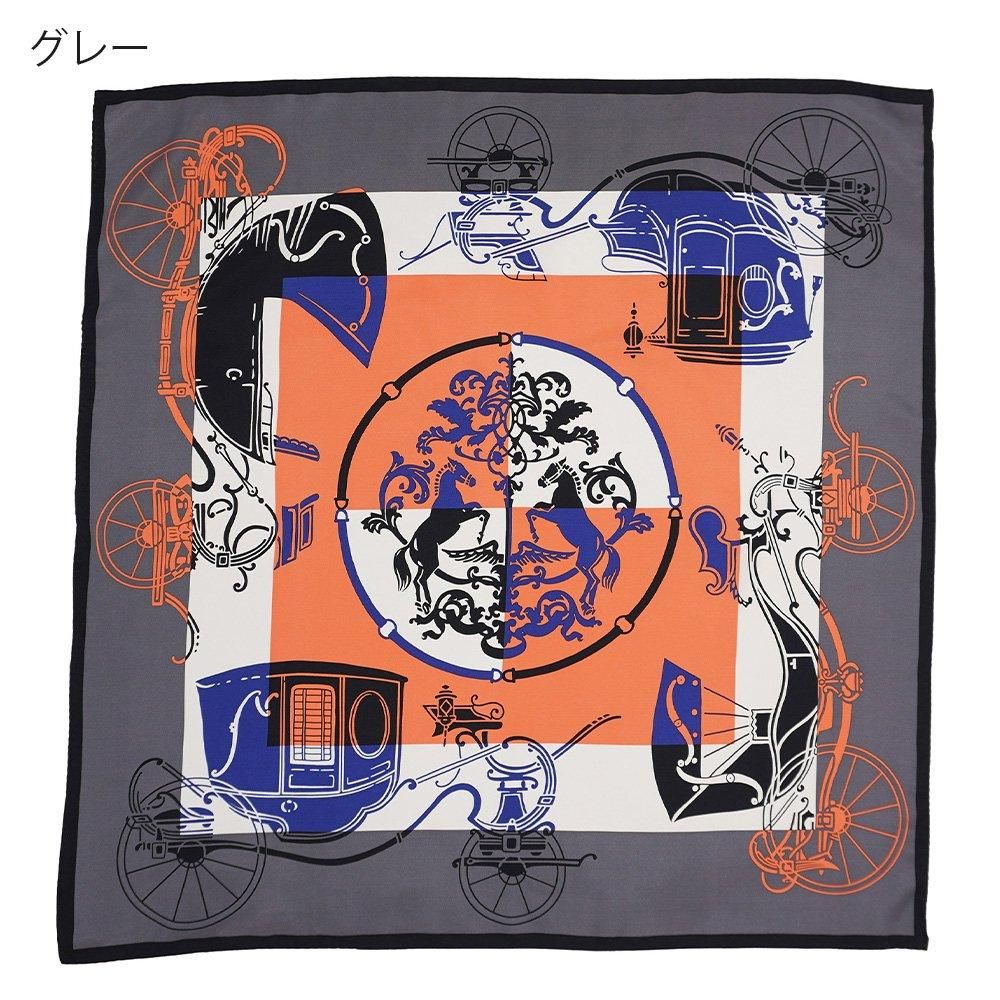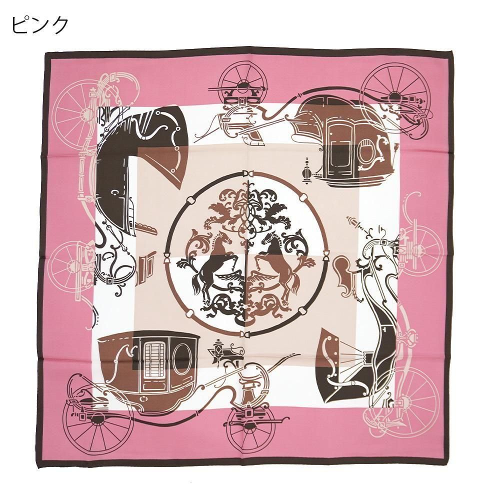 色面シルエット馬車はクラシカルなデザインとカラーが馬車の柄と合わさった素敵なスカーフですよね。