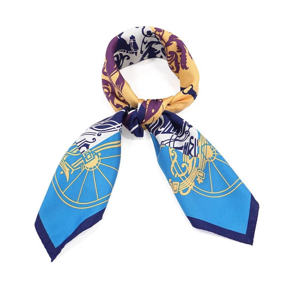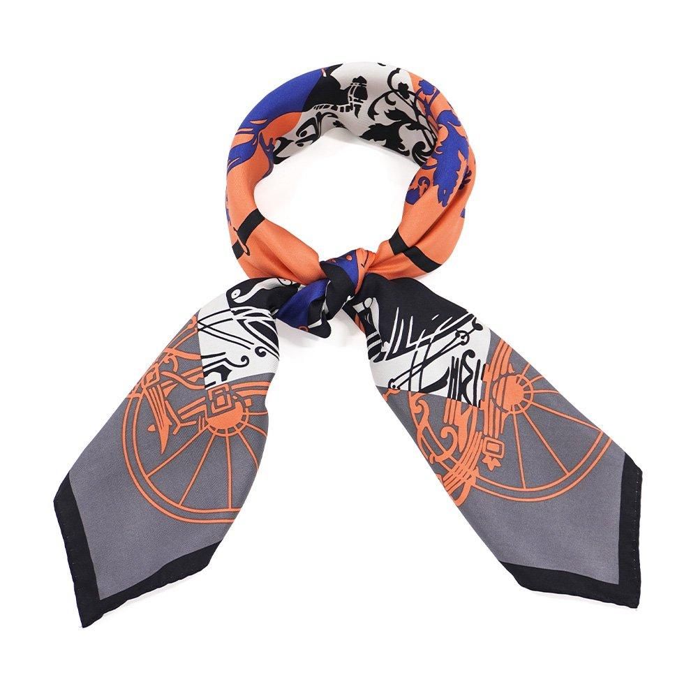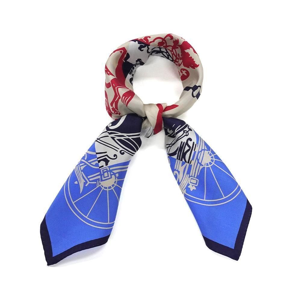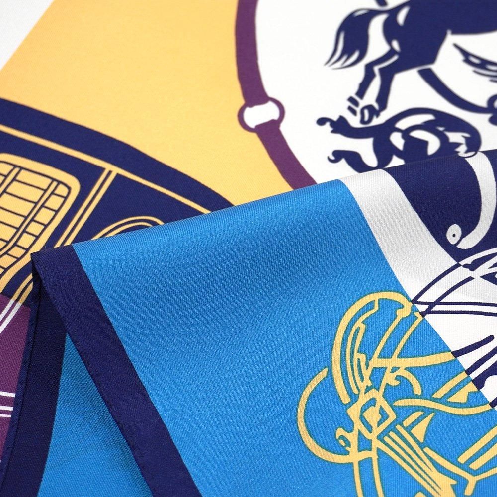 色面シルエット馬車はクラシカルなデザインとカラーが馬車の柄と合わさった素敵なスカーフですよね。