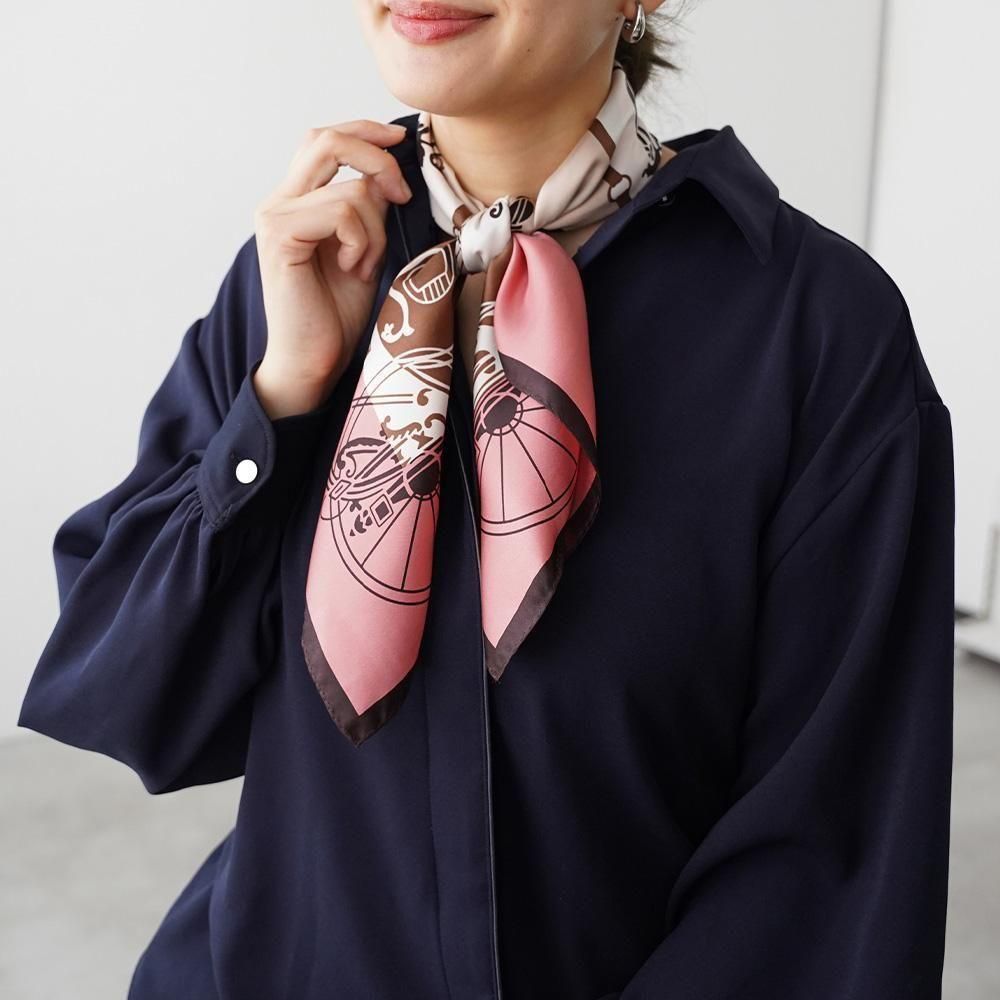 小さめサイズのスカーフなので、手首やバッグ、カバンに巻いてもお使いいただけます。