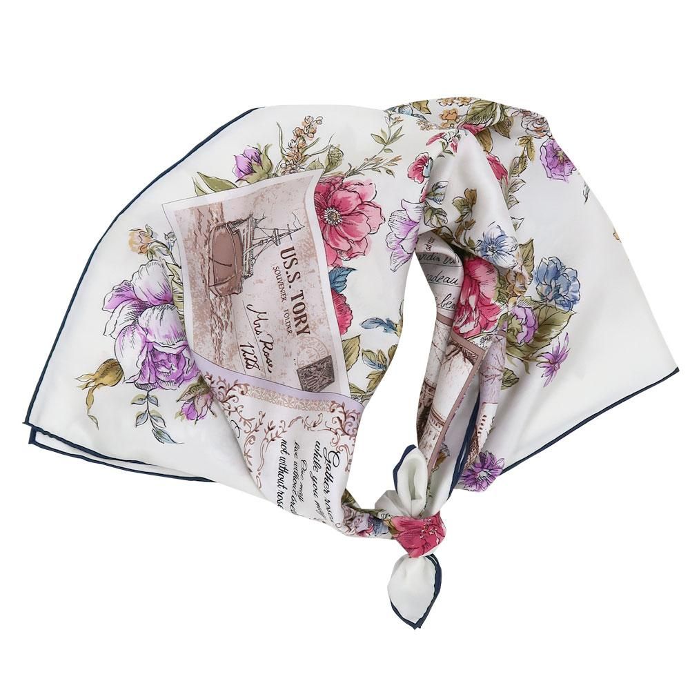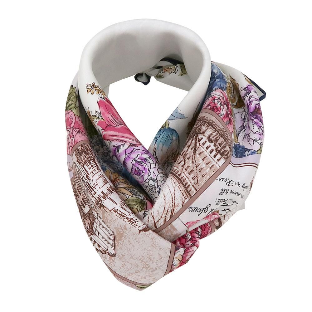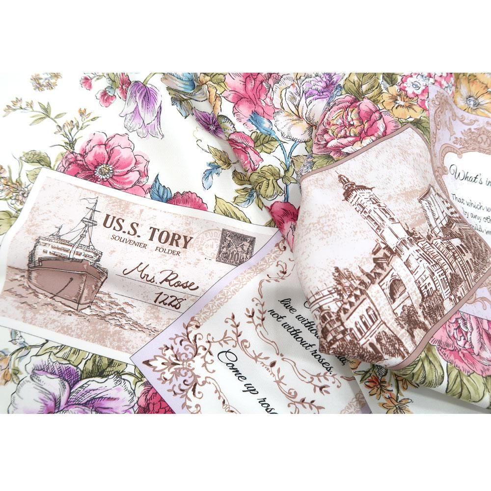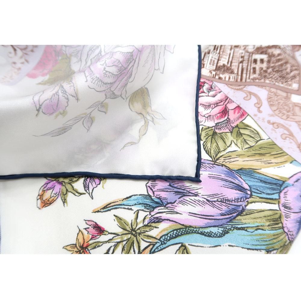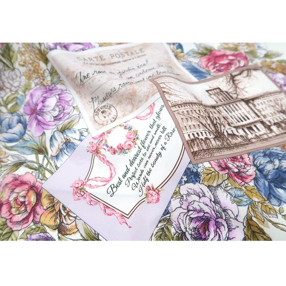 それぞれ「キング(神奈川県庁)」、「クイーン(横浜税関)」、「ジャック(横浜開港記念会館)」と親しまれる横浜を代表する3塔をメーンモチーフにバラなどの花々を丁寧に描いたスカーフです。