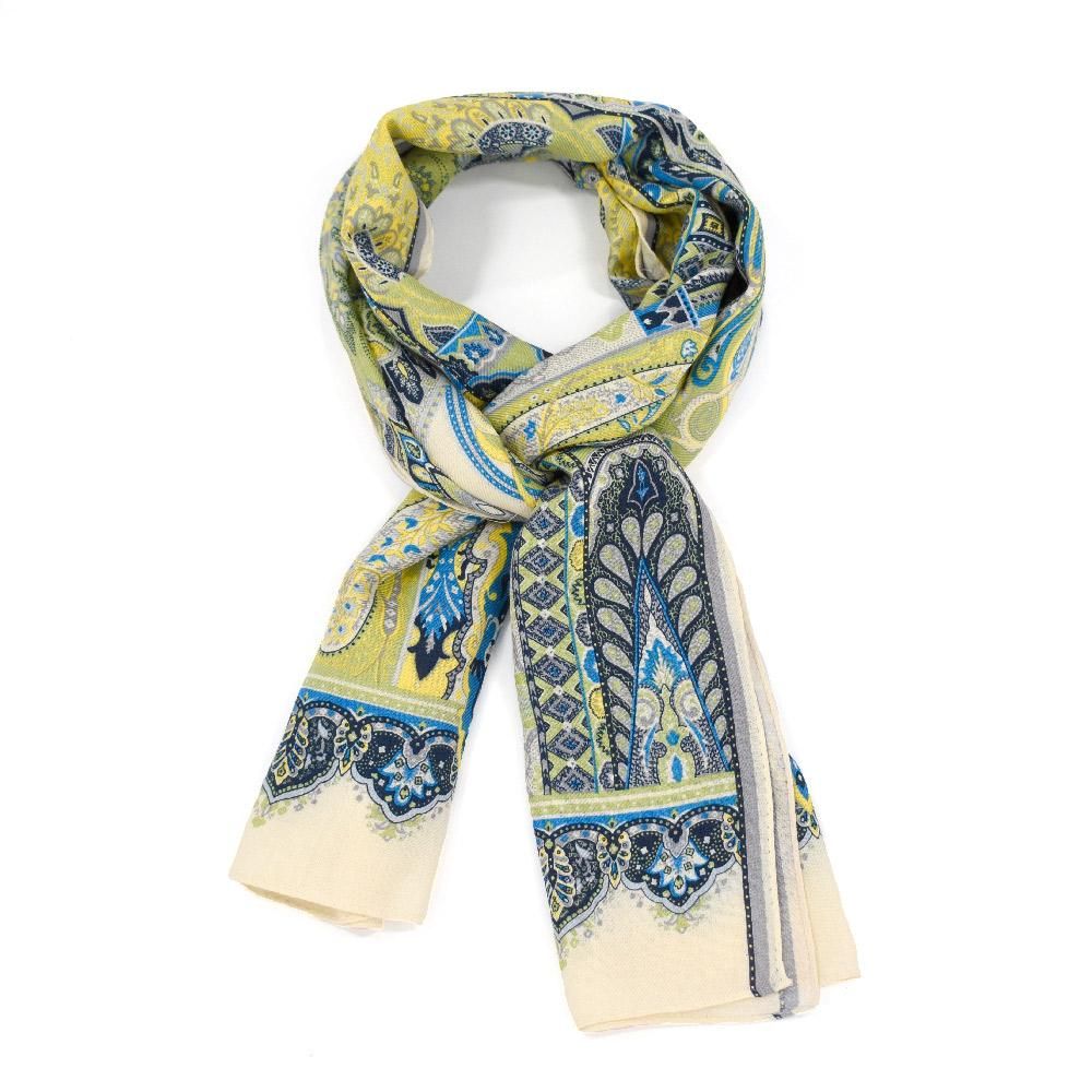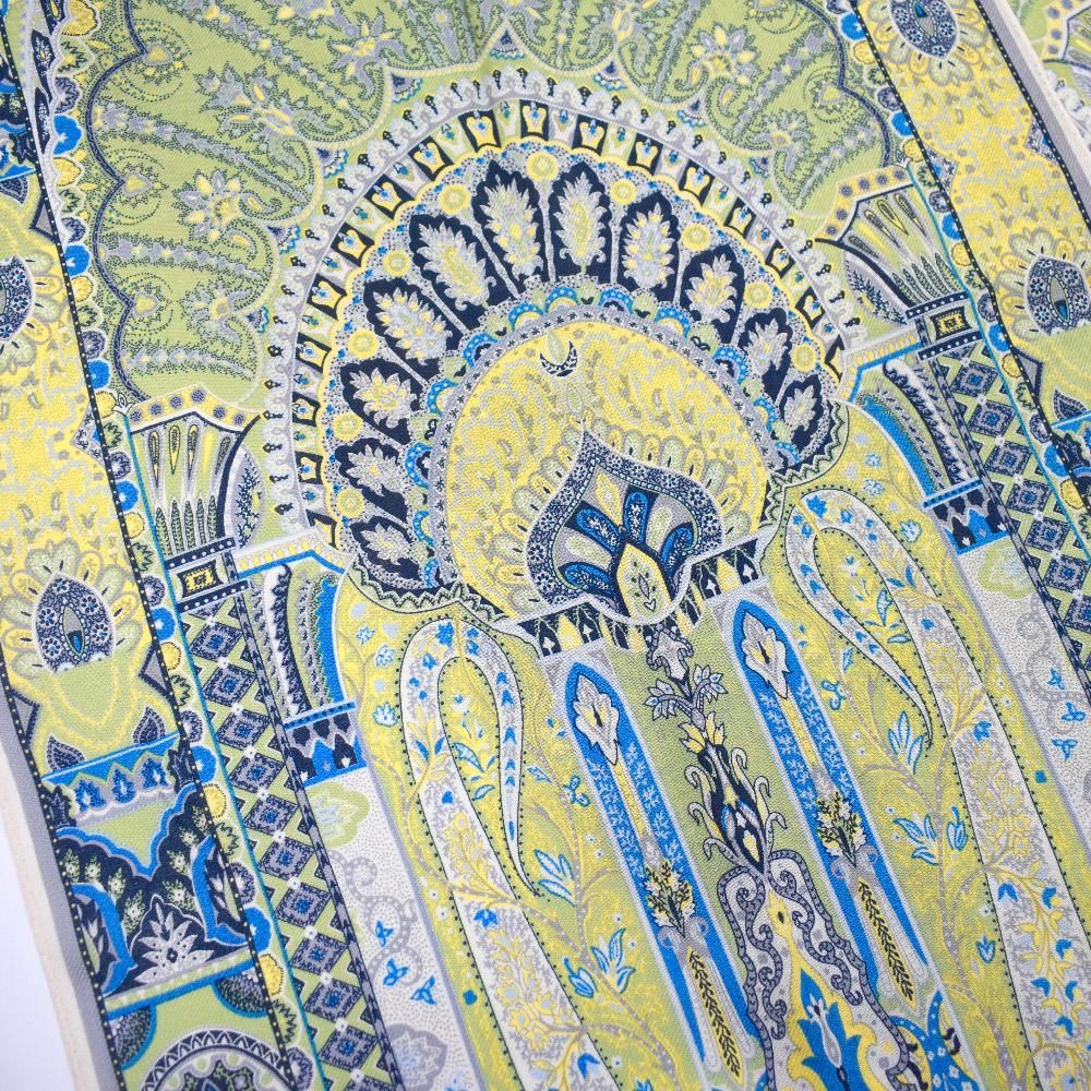 緻密に描かれたエレガントなインドのカシミール地方の伝統的な文様のペイズリーを緻密に描いたストールです。落ち着いた色合いで合わせやすいカラーリングです。