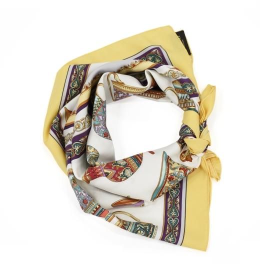 航海のお供であるコンパスに六分儀や舵輪のモチーフを描いたスカーフです。