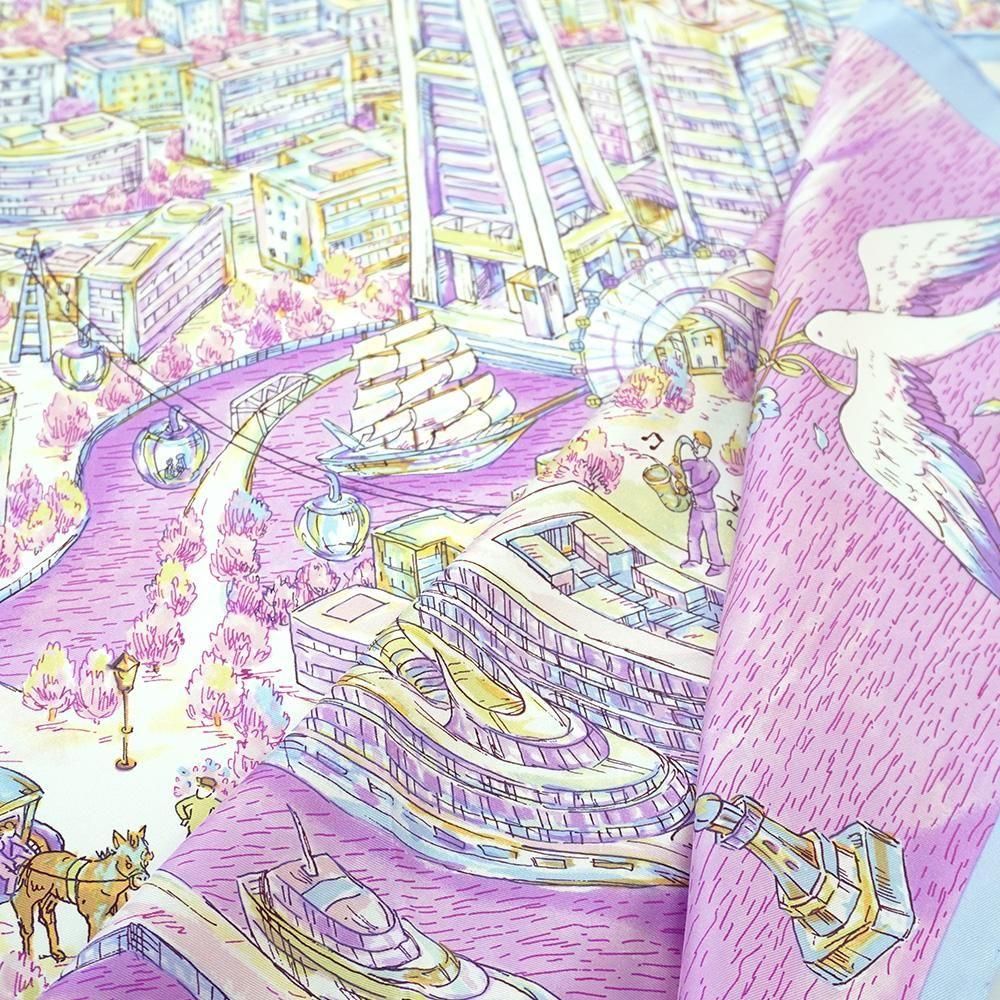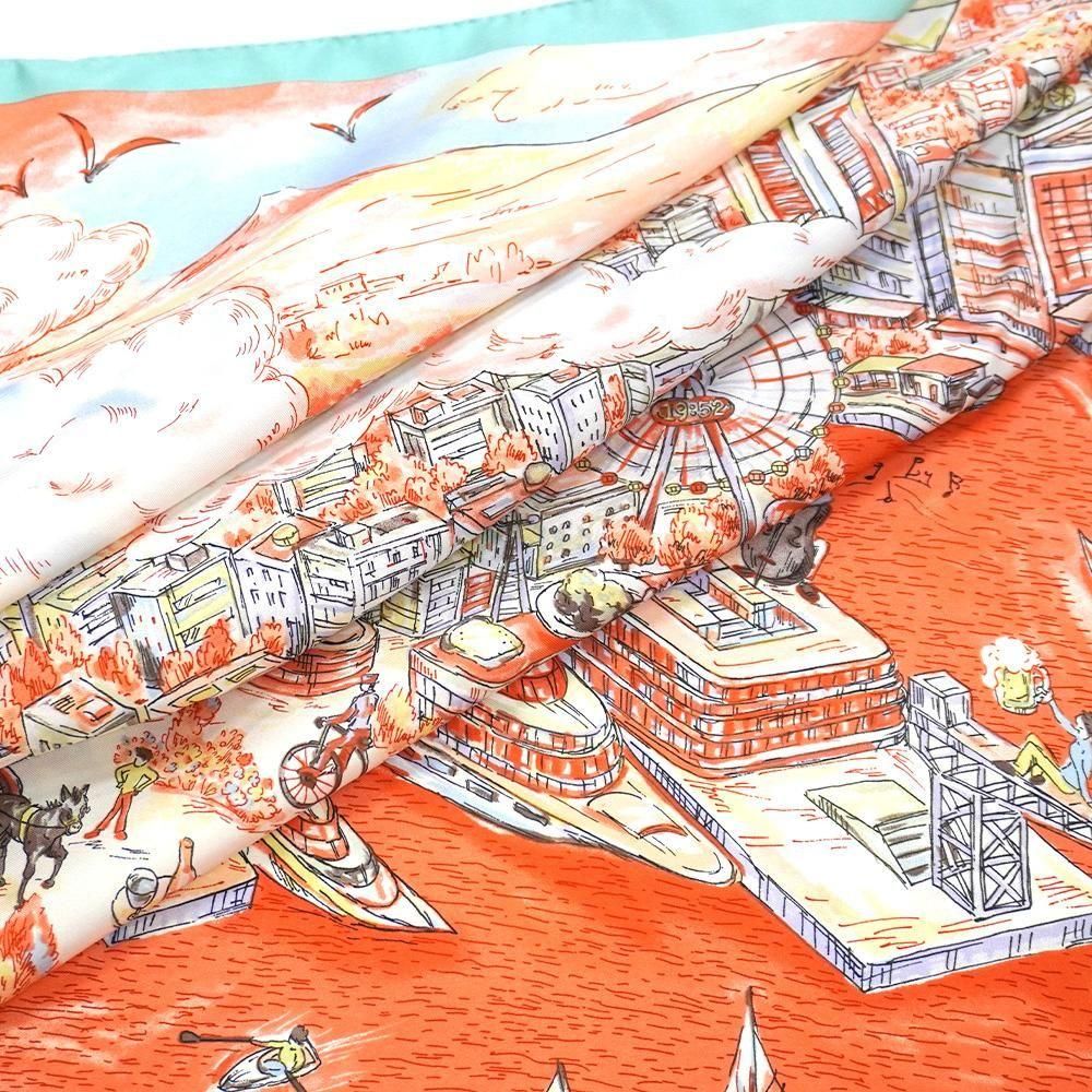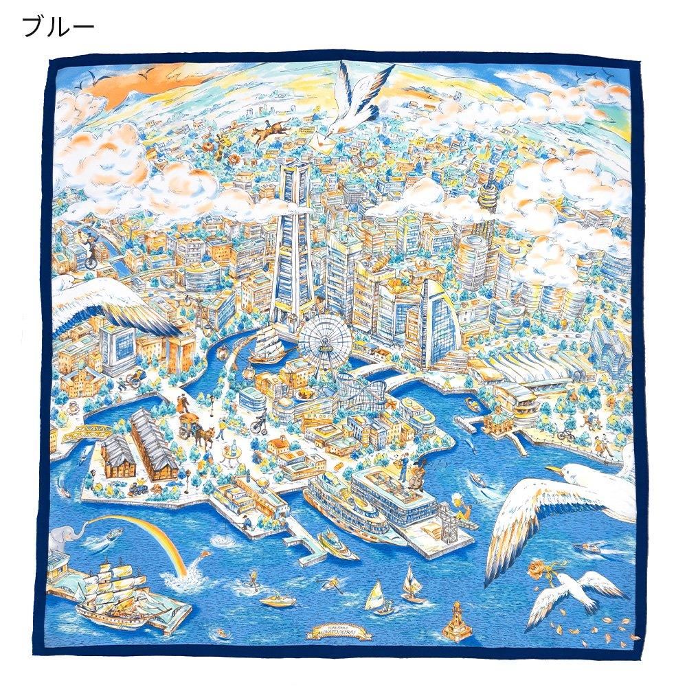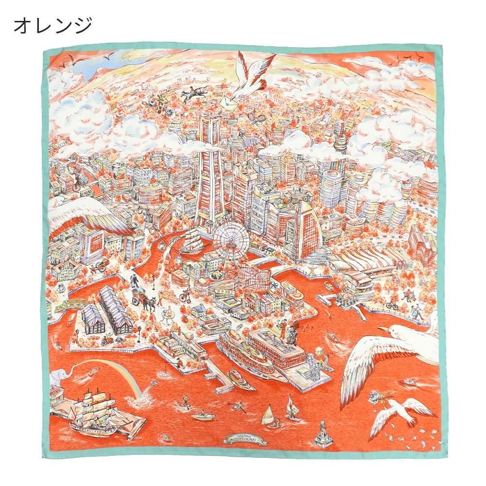 横浜みなとみらいの風景をカモメの視点で見下ろした様子を丁寧に描いたスカーフです。