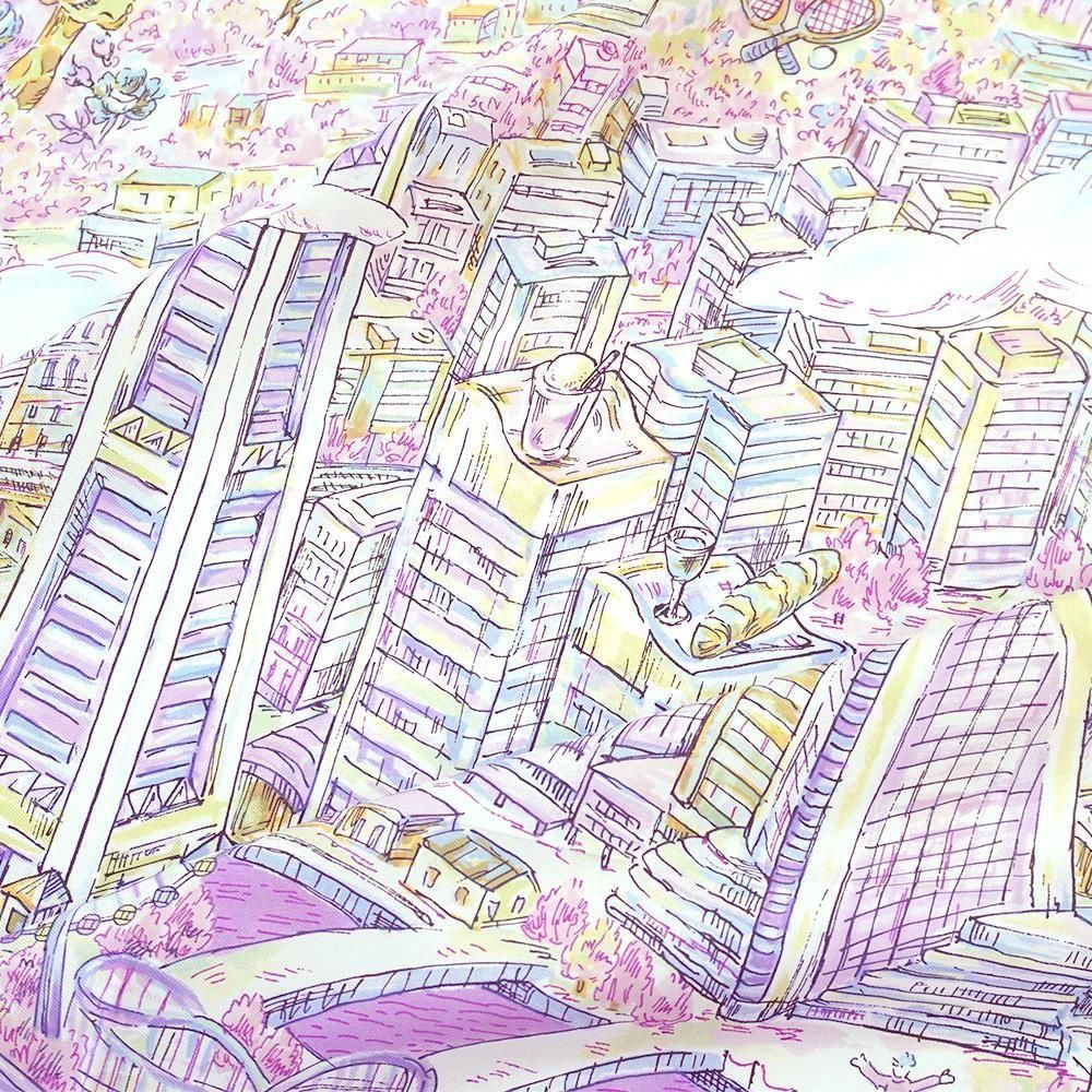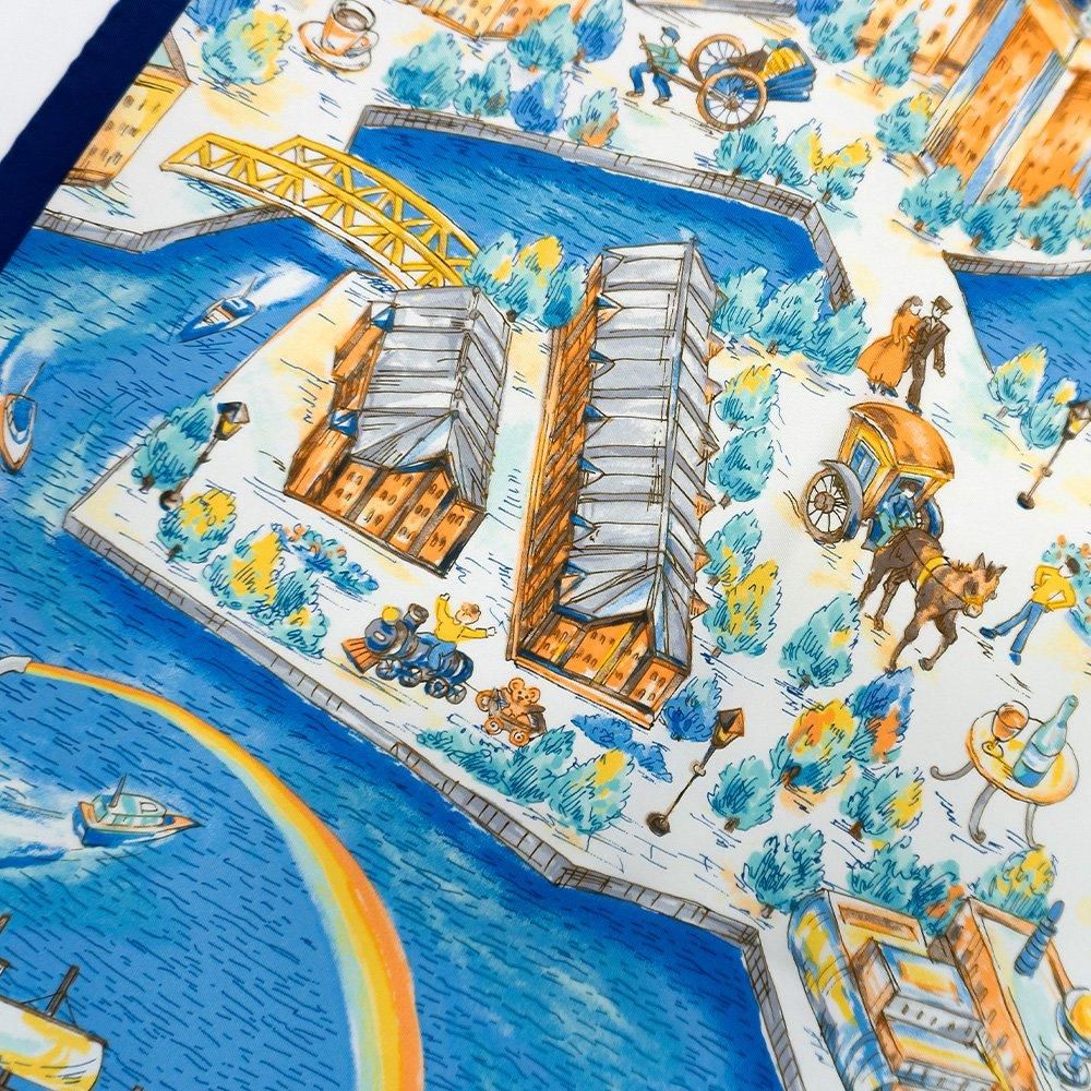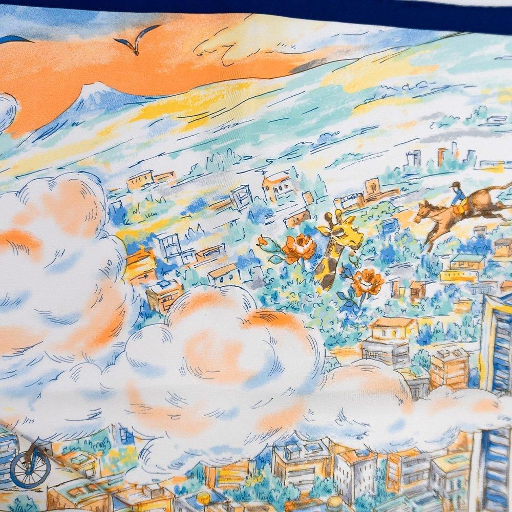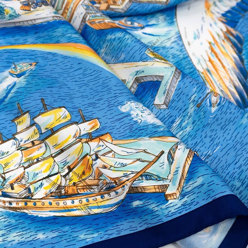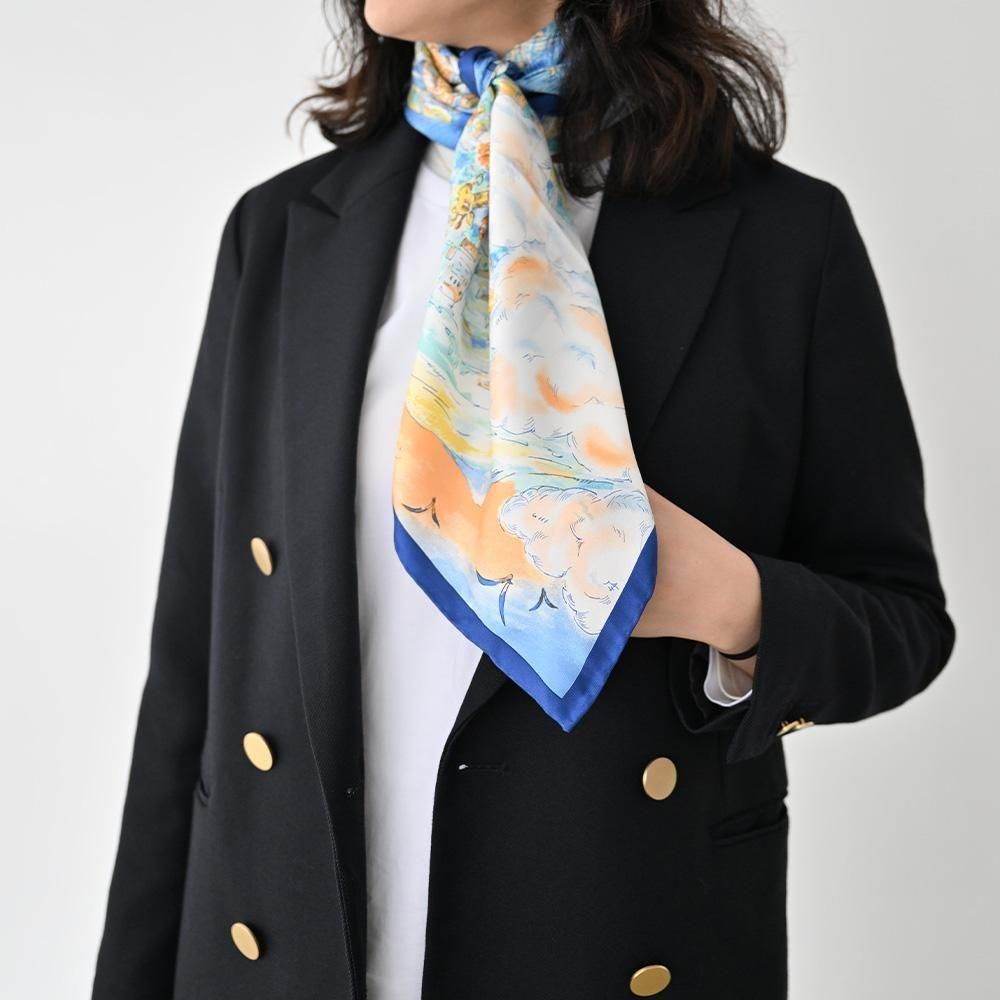 横浜みなとみらいの風景をカモメの視点で見下ろした様子を丁寧に描いたスカーフです。