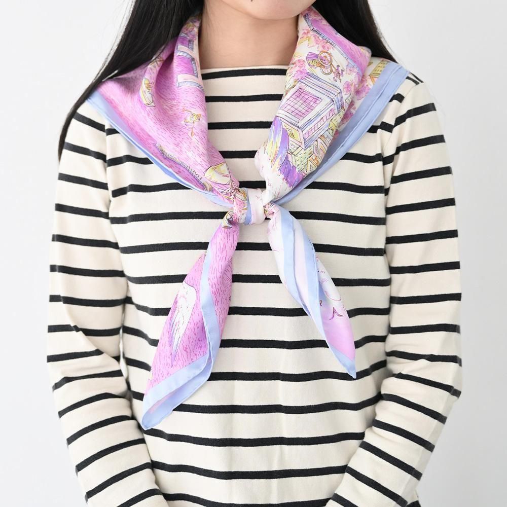 明るい春色のスカーフは気分も明るくしてくれますよね。
