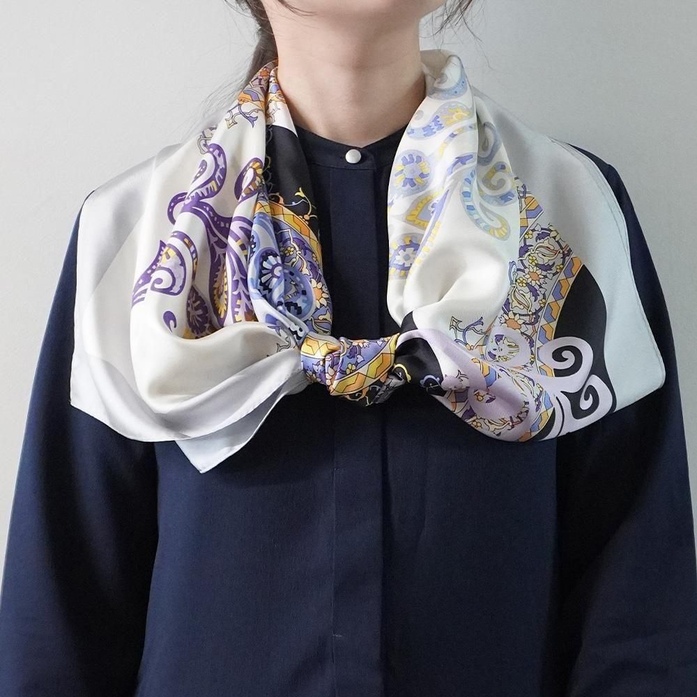 オススメ四季のツリー花(CFE-224) 伝統横濱スカーフ 大判 シルクツイル スカーフ (全2色)